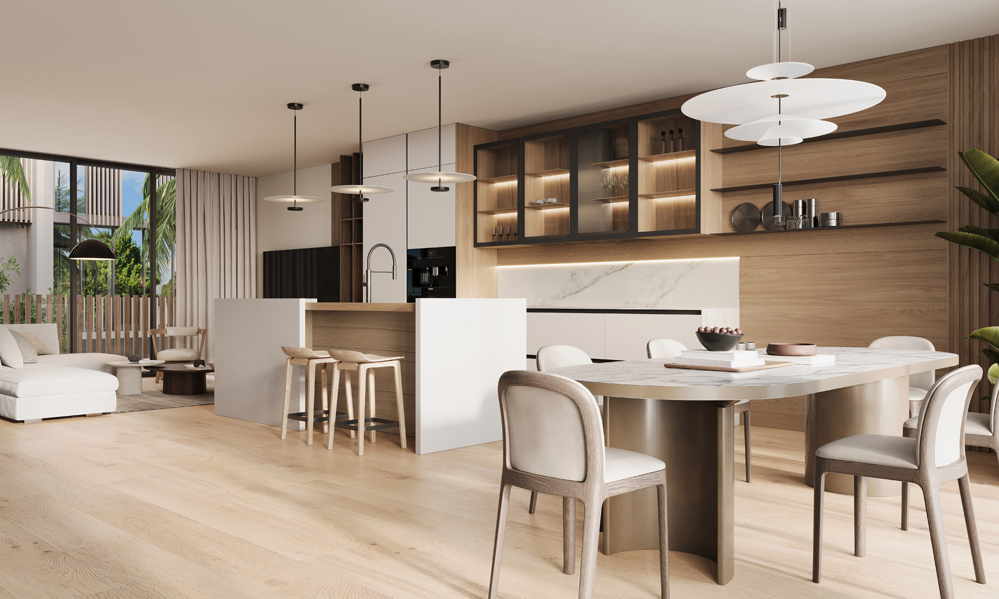 Each residence is meticulously designed to deliver the highest standard of comfort and luxury. Expansive windows and doors invite natural light to flood the interiors, while a carefully curated palette of materials and colors exudes warmth and tranquility. Homes are outfitted with state-of-the-art kitchens, premium appliances, designer bathrooms, and pre-wiring for smart home automation.